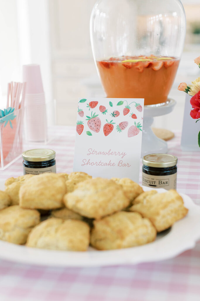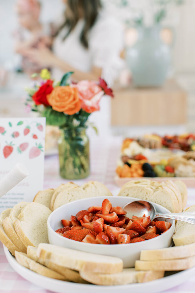 I had fun building the menu around our theme, incorporating strawberries into both sweet and savory dishes. The result was a playful mix that felt elegant yet festive and casual, evoking a summer picnic vibe.