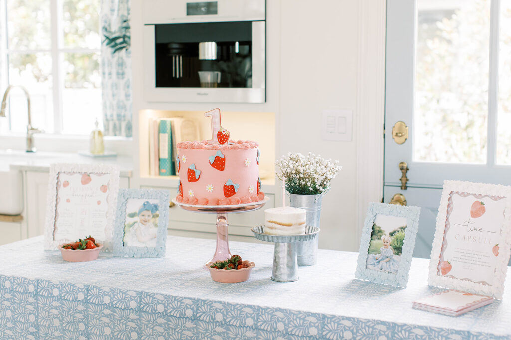 Ellie’s cake was one of my all-time favorites. The strawberry decoration was simple and charming, and the cake itself had the most delicious fresh strawberry flavor. It felt perfectly on theme and so cheerful! We had a little mini naked cake for her to smash.